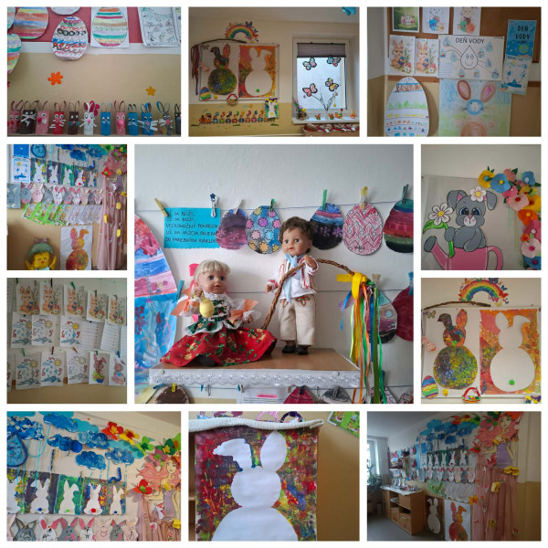 Jarné nástenky krásne žiaria, v škôlke Babín ich deti s láskou tvoria. Zš s Mš Babín