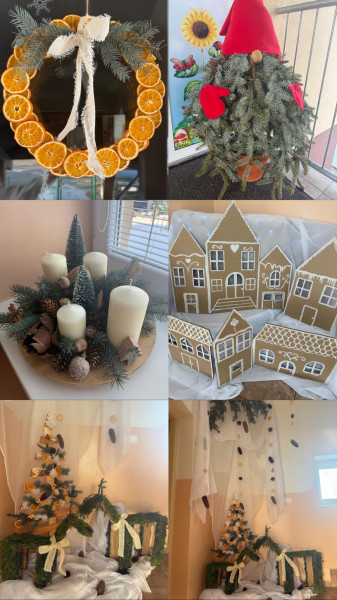 Spolu s pani učiteľkami sme sa rozhodli vytvoriť atmosféru Vianoc prostredníctvom prírodných materiálov- vôňa ihličia, pomarančov, šišiek a dreva premenili naše priestory na pokojný les. MŠ Zábiedovo
